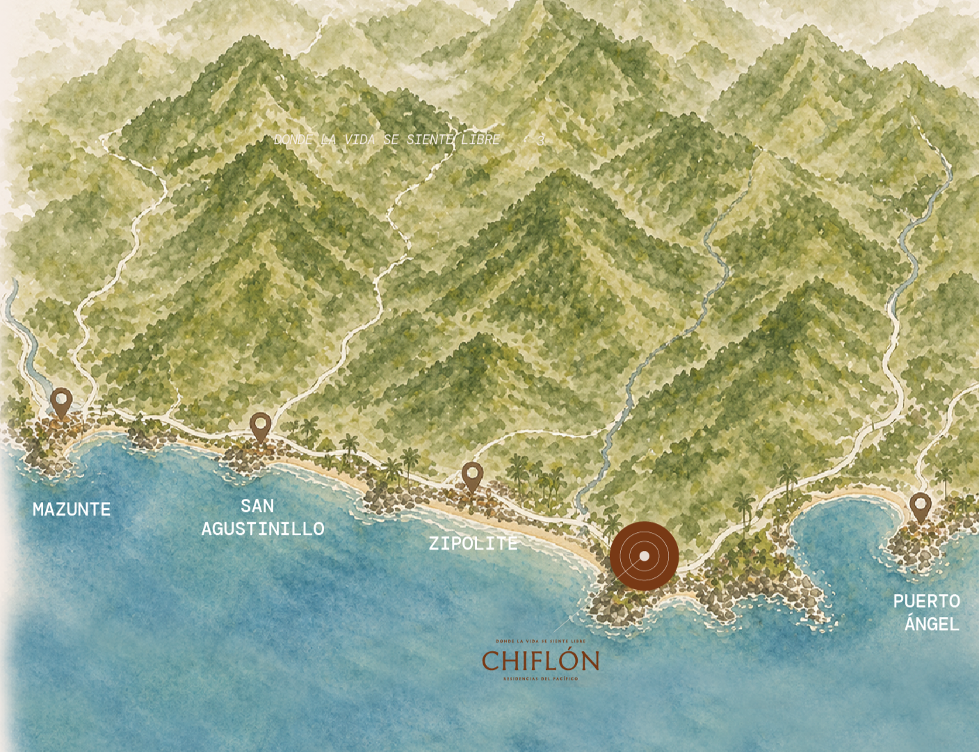 CHIFLÓN es un desarrollo residencial en la costa oaxaqueña pensado para quienes buscan tranquilidad, cercanía al mar y una inversión con visión.